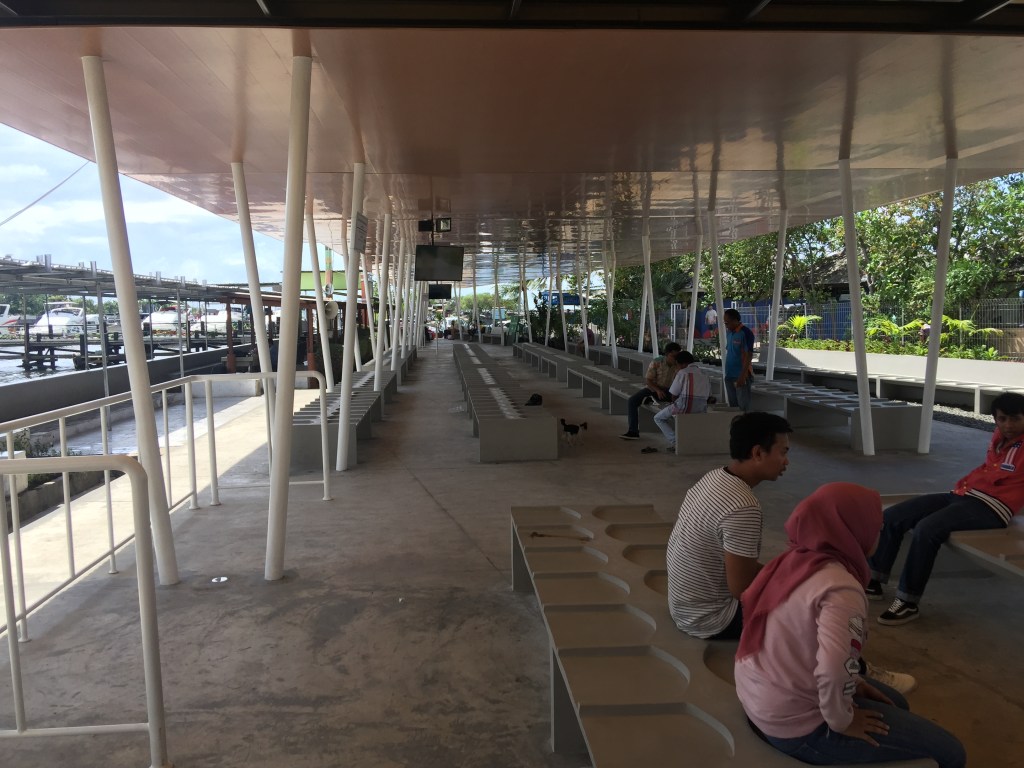 Dari proyek gambar 3D, ke desain kanopi parkiran mobil, ke shelter marina. Tempat 800 pengunjung dengan koper rimowa hingga penduduk pulau dan belanjaan sayur dan daging menunggu kapal di bawah teriknya matahari.